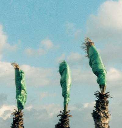 המיצב דן בחסימת הראייה כדרך חיים ובקשר שבין עוורון לנראות ובין הסתרה לחשיפה. ראייתו של הצופה חסומה ע"י הגדר הירוקה, והדקלים העטופים להגנה מפני הרוח, ניצבים כשבויים מכוסי עיניים.