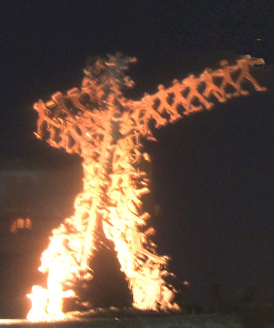 אחמד כנעאן - דוד וגוליית קיבלתי באי מייל צילום עבודה של אחמד כנעאן احمد كنعان. בצילום נראה היה כי הפסל עולה באש, מה שיצר אסוציאציה לפסלים של קבוצת זיק. אז ראשית לא, הפסל אינו עולה באש. הוא מואר על ידי זרקור. בהמשך מופיע צילום של העבודה באור יום רגיל.יש משהו בפסל הזה שגורם לי לשאול איך לא עשו את זה קודם, ובעצם כן. אותם סמלים שאמנים יהודים בישראל אימצו לחיקם האמנותי כמה עשרות שנים קודם לכן בחיפוש אחר מקורות במזרח (כמו למשל בעבודות של חברי קבוצת הכנענים), מוצאים את מקומם מחדש בעבודתו של כנעאן: גמלים, סוסים מכונפים, דמויות מהמיתולוגיה הכנענית והמזרח תיכונית, לוחמים, ועכשיו - דוד וגוליית. אפילו שם משפחתו של האמן נקשר לכך: כשראיתי בפעם הראשונה את שמו בתערוכה תהיתי - כנעאן? כנען? מסתבר שהמשפחה מתגוררת בתמרה כ-200 שנה, ובניה יושבים כל רחבי המזרח הקרוב, מתורכיה, סוריה, עירק, אירן וירדן ועד הגליל. יש ביניהם נוצרים, מוסלמים ודרוזים. בתשובה לשאלותיי על הפסל קיבלתי מכנעאן שני טקסטים. האחד שלו והשני מאת המשורר מחמוד דרוויש. כנעאן: על פי המיתוס המוכר דוד האמיץ עמד מול הענק גוליית הפלסטיני (פלישתי), וניצח אותו. בציורים אירופאים המתארים את הסצנה מתואר דוד כגיבור צעיר ויפה תואר שמחזיק בידיו את ראשו החתוך של גוליית. באופן טבעי ואוטומטי אנחנו מזדהים עם דוד הצעיר. את הצד השני לא שמענו, ואין בנו כל רחמים כלפי גוליית הפלסטיני, שנהרג בזמן שביקש להגן על בני עמו. הסיבה לכך פשוטה: כך רצו שנחשוב. זה כמו בסרט קולנוע, שיכול לגרום לנו להזדהות עם הגיבור למרות שהוא פושע אלים. במיתוס הפלסטיני המודרני בעלי התפקידים מתחלפים: דאוד (דוד) הוא הנער הצעיר הפלסטיני האמיץ המחזיק רוגטקה ואבן ומתמודד מול גוליית, הלא הוא צבא חמוש בנשק חם ומשתלט על אדמתו. צילום למצב הזה אפשר לראות בכל בית פלסטיני. שם הפסל, "דוד וגוליית", עשוי לבלבל משום שאנו לא מזהים מי הוא דוד ומי הוא גוליית בכל הסיפור. ואולי בלבול זה משקף את בלבול הזהויות וההזדהויות שעמו נאלצים הערבים הפלסטינים אזרחי מדינת ישראל להתמודד. הטקסט השני, שנכתב, כאמור, על ידי מחמוד דרויש, הופיע בספר "נוכחות הנעדר", ותורגם לעברית על ידי כנעאן. לטעמי הוא מאיר את פסלו של כנעאן באופן מיוחד. והיה עליך לבחור בשוליים כדי לדעת איפה אתה. השוליים הם חלון המשקיף על העולם, לא בתוכו ולא מחוצה לו. השוליים הם צינוק בלי קירות. השוליים הם מצלמה אישית אשר בוחרת מהסצנה מה שתרצה מתמונות ואז המלך הוא לא מלך ולא יהיה המקלע של דוד אלא הנשק של גוליית אם זה נכון שמי שכותב סיפורו לפני האחר מרוויח את ארץ הסיפור? אבל הכתיבה צריכה ציפורניים כדי שתחפור את השריד בסלע.