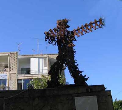 טקסט פסימי-אופטימי על הפסל "דוד וגוליית" של אחמד כנעאן