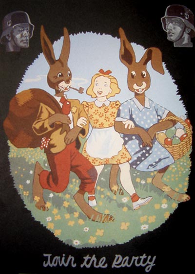 Yoav Ben-david, Join The Party 2002 In Europe the Star of David still signifies the victim, and the Swastika has many believers, and a placard in a European square like the one raised in that Palestinian village would have been shocking, scary and demanding reaction. There is no doubt that Antisemitism exists and even increased recently. Still many young, bright, intelligent Israelis dismiss the threatening signs, playing and toying with their visual symbols and ignore them when they build their own world-view. True, it's very confusing, but; I'm afraid, even though the values are shared, the struggles are not in the same court. The fight against antisemites and racists in Europe is the Europeans' duty, I can not help as I am preoccupied with other struggles. Swastikas don't bother me and the symbols of the Holocaust should be stripped off their power so they can not serve the Israeli nationalists and Fascists. We need to conduct our struggle in the Israeli and Middle-Eastern language.