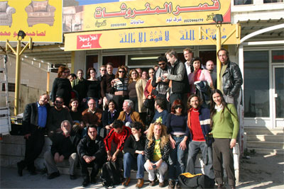 Liminal Spaces participants in front the rented furniture store in Qalandiya, march 2006 The ambiguity once encountered, became the thread running through the project’s story. Even though the stance of Liminal was very clear, all participants opposed openly to Israeli occupation. The recent example of the “Documenta 12” exhibition this summer in Kassel however exposed the deeper layers of art dealing with Middle East politics. Three artists from “Liminal Spaces” got invited to the show. One Israeli, Yael Bartana, and two Austrians, Peter Friedl and Simon Wachsmuth. Yet, from Liminal Spaces, no Palestinian artists took part. In Documenta 12 in general, among the eight International artists dealing with the Middle East conflict and the "Muslim Other", there was only one who spoke from the position of the other, herself., Ahlam Shibli (who is a Palestinian Israeli citizen). Maybe ambiguity found its expression in imbalance. Certainly, judging from Documenta or “Liminal Spaces”, there is a Western preoccupation with the former or present “Orient”, Roger Buergel, the curator of one of the art world's biggest show, calls a “key issue”: “Validity claims between Christianity and Islam always existed.” Today the only difference is that the conflict “is a globalized one.” Now the question is, does the preoccupation itself embody ambiguity?’ Looking at the three Liminal as well as Documenta artists and their projects the layers get more obvious.